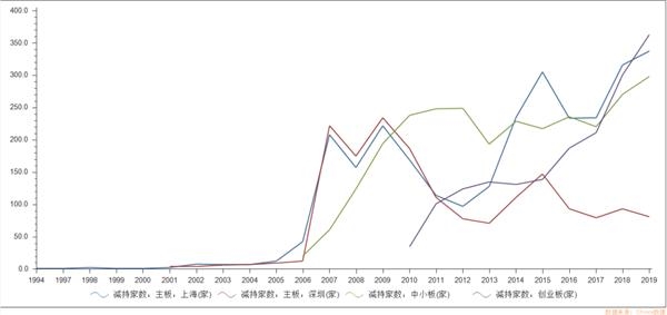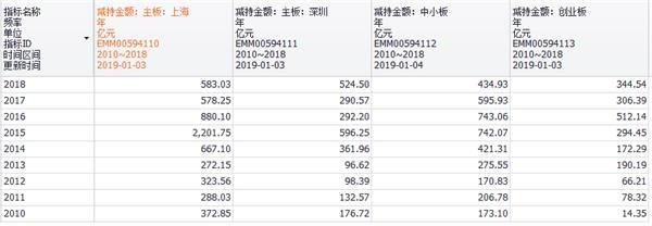 到2018年,上海主板减持金额为583.03亿元,深圳主板减持金额为524.50亿元,中小板减持金额为434.93亿元,同期创业板减持金额为344.54亿元。