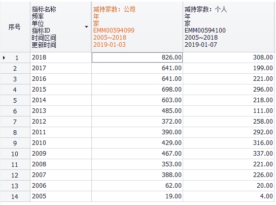 从个人减持上来看,个人减持308家,2017年时减持199家,一年内增加109家。