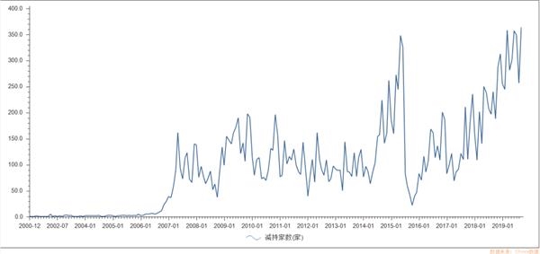 到今年3月,减持家数达358家,然后数据并没有因此回落,而是不断在高位波动,今年9月减持家数达364家。