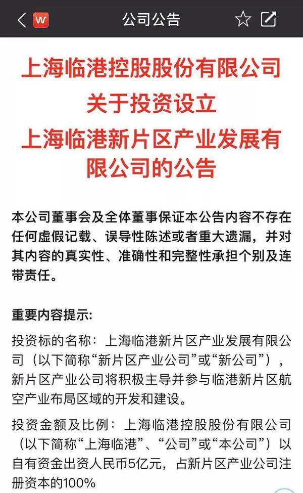 上海临港已决定设立出资5亿元设立全资子公司上海临港新片区产业发展有限公司(下称“新片区公司”),新片区公司将积极主导并参与临港新片区航空产业布局区域的开发和建设。