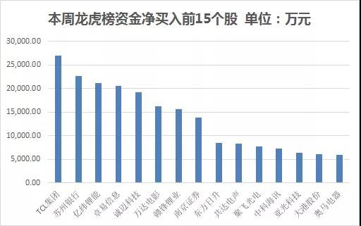 个股龙虎榜净买入金额居前的15只个股分别为: