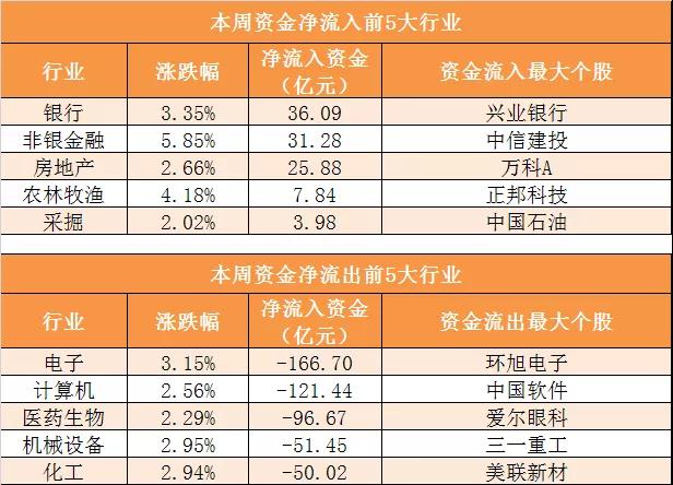 28个申万一级行业中,本周6个行业实现资金净流入,其中银行业净流入36.09亿元居首。