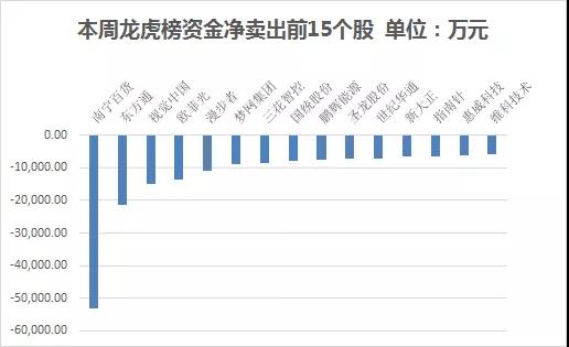 个股龙虎榜净卖出金额居前的15只个股分别为:
