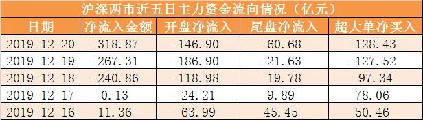 本周两市主力资金累计净流出815.55亿元。其中周五(12月20日)主力资金开盘净流出146.90亿元,尾盘净流出60.68亿元,全天净流出318.87亿元。