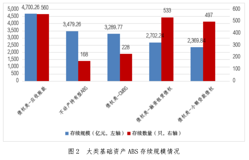 截至2025年4月底,ABS存续2,444只、20,785.66亿元。其中基础设施公募REITs所投ABS存续70只、规模1,765.86亿元。此外,基础资产为应收账款、不动产持有型ABS、CMBS、融资租赁债权、小额贷款债权的ABS存续规模合计16,541.37亿元,占总存续规模的79.58%;其余基础资产的ABS存续规模合计2,478.44亿元,占总存续规模的11.92%。
