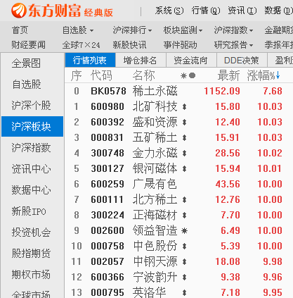 指数全线走强 稀土永磁掀涨停潮