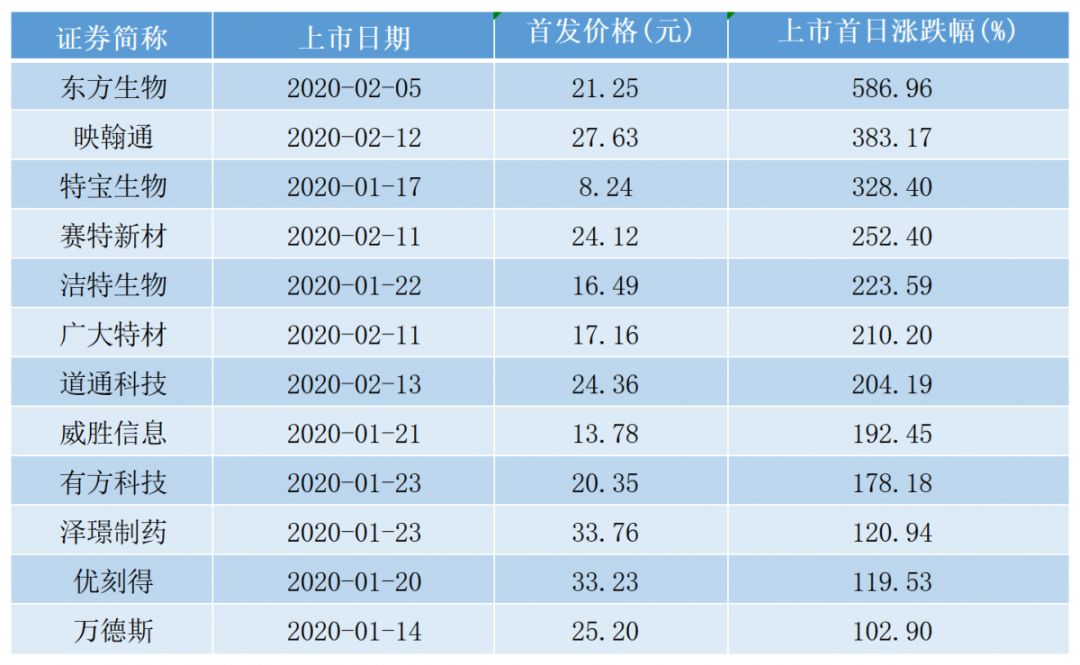 科创板新股上市首日暴涨场景再度回归。科创板新股东方生物在2月5日以586.96%的涨幅创出科创板公司上市首日涨幅最高纪录,道通科技、映翰通、广大特材、赛特新材等2月份上市交易的科创板个股,在上市首日涨幅也均超过200%。
