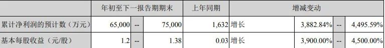 公司预计2020年归母净利润6.5亿元至7.5亿元,同比增长3882.84%至4495.59%。