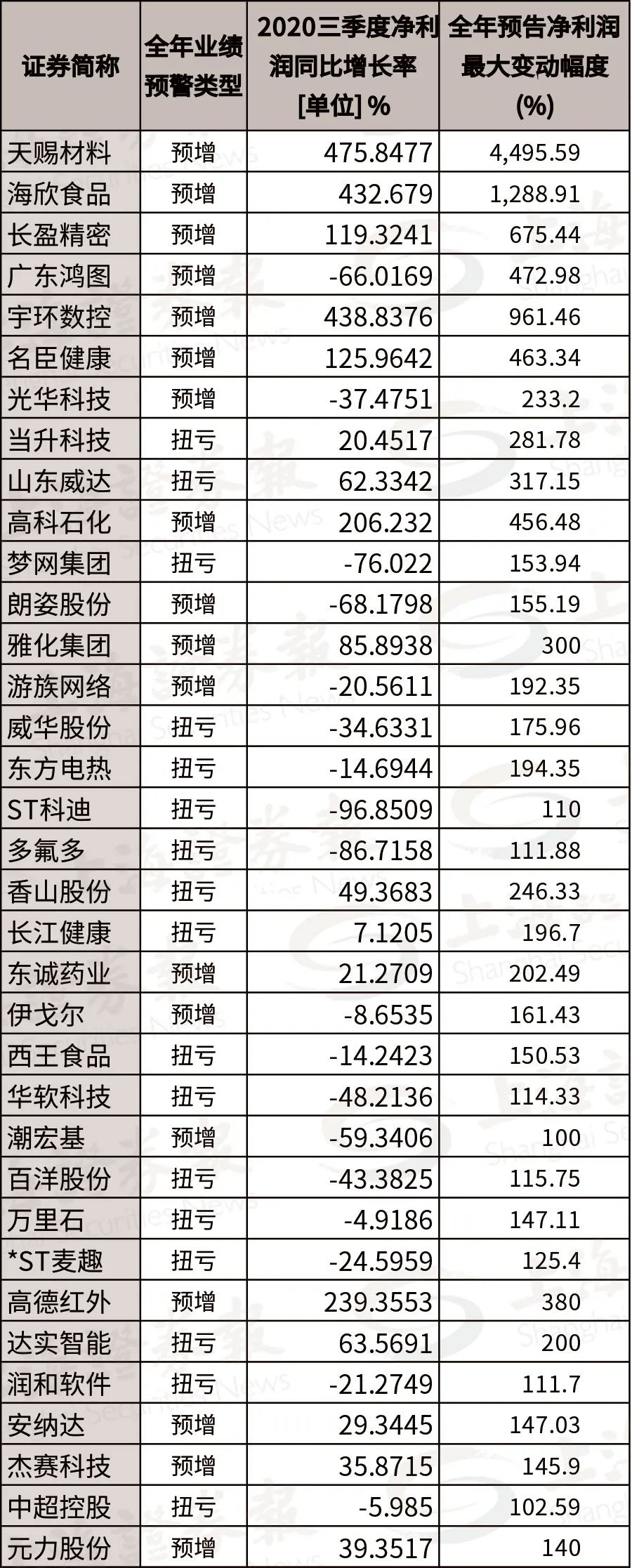 三季报披露即将收官,A股2020年全年业绩预告正式拉开帷幕。