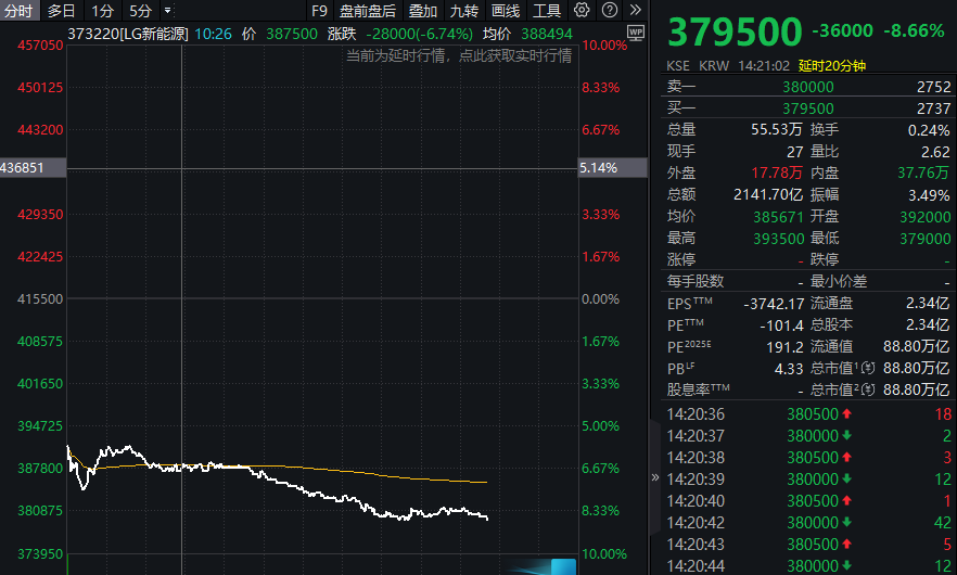 12月18日盘中,韩国动力电池龙头企业LG新能源的股价大幅跳水。