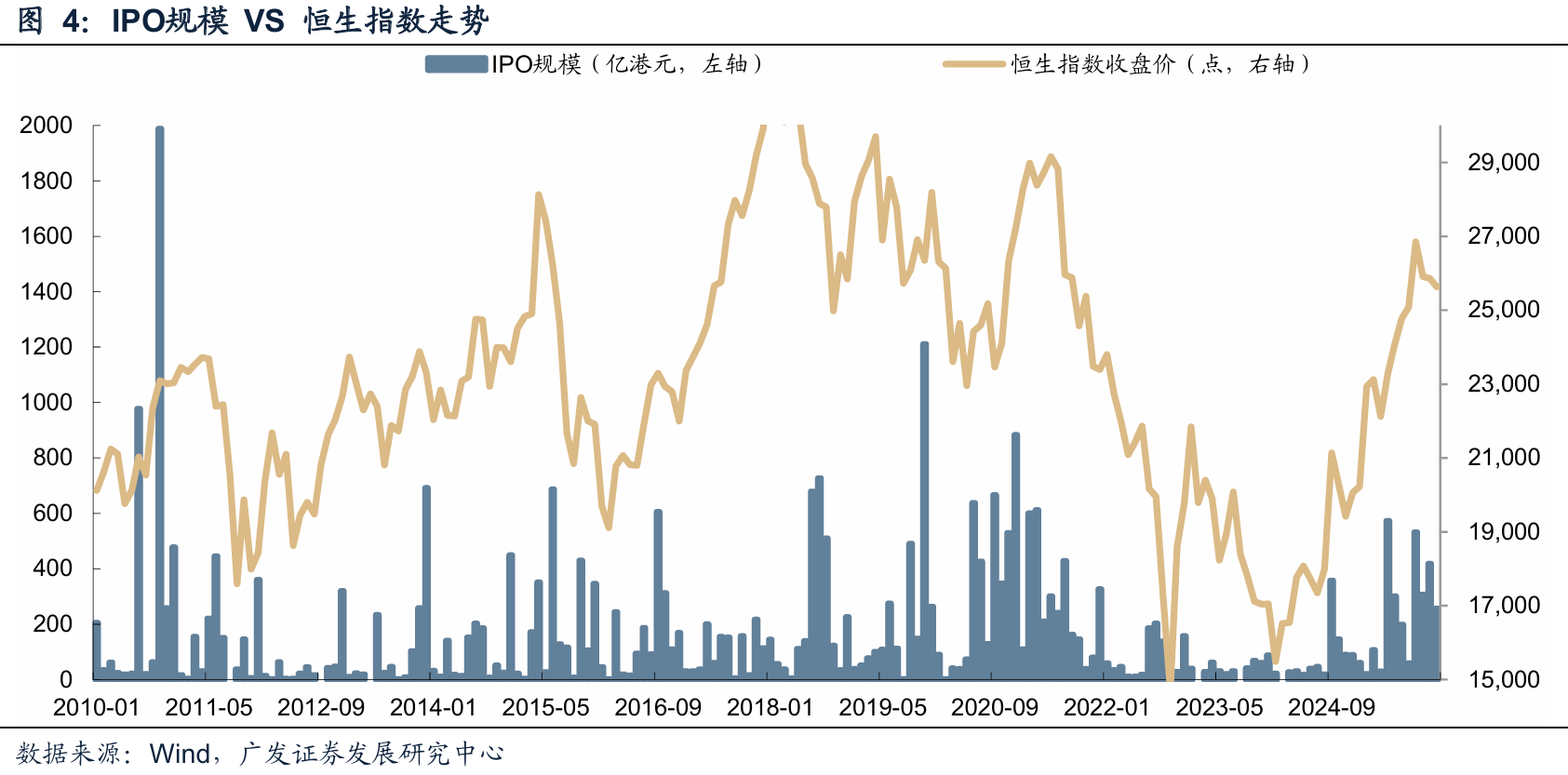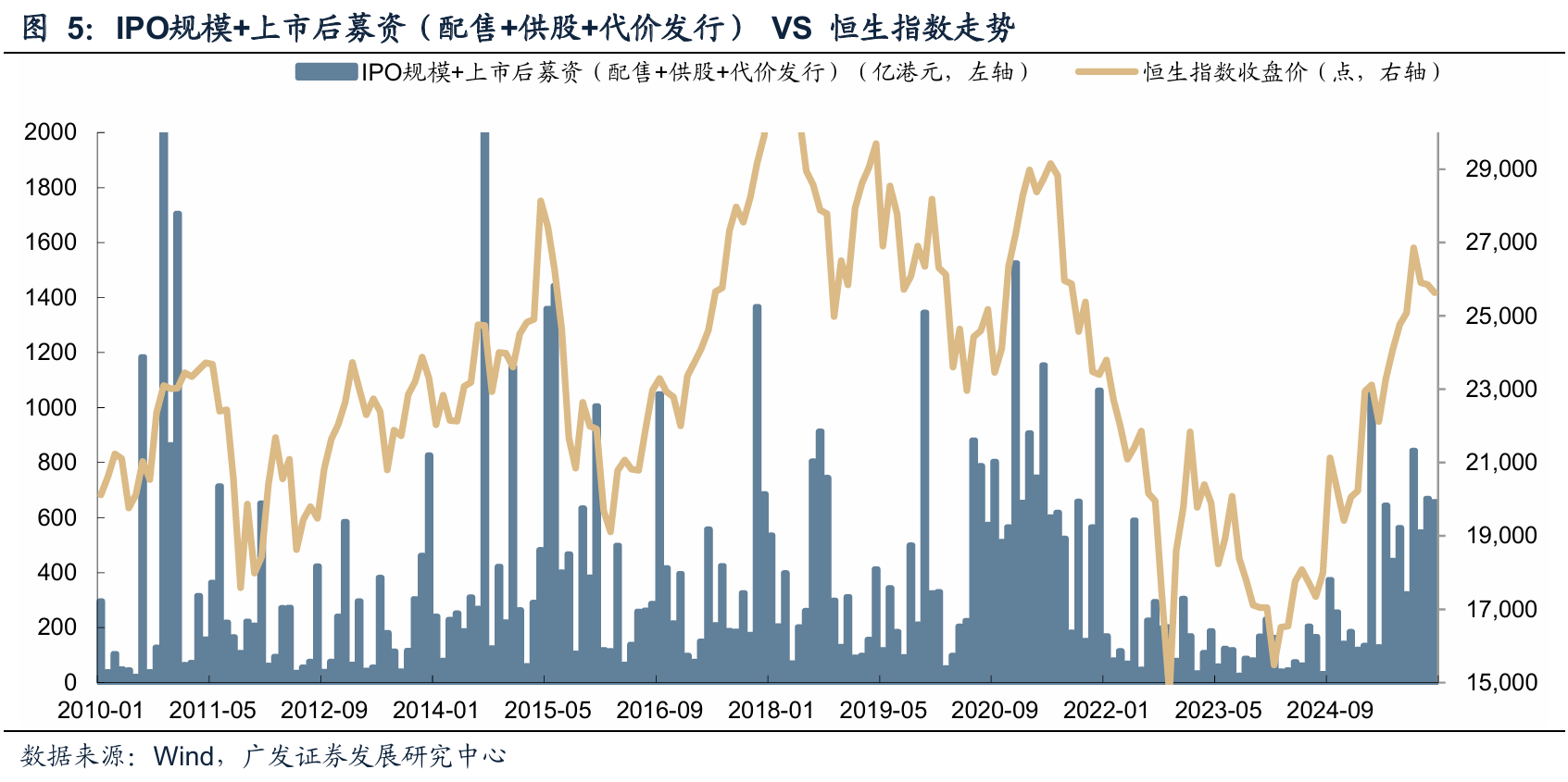 一级市场抽水通常对港股走势没有绝对性影响。25年IPO两次高峰5月、9月恒指、恒科均取得正收益,并且9月行情甚至出现放量上涨。