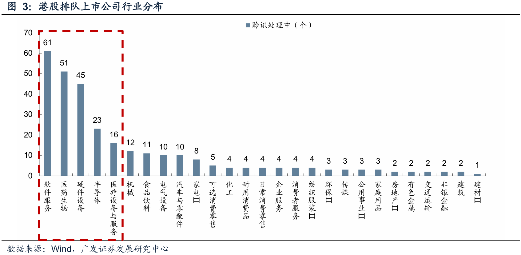 截至2026年1月10日,港股IPO排队企业达300家,行业分布高度集中:科技领域(软件服务61家、硬件设备45家、半导体23家)和医药健康(医药生物51家、医疗设备与服务16家)成为主力军。这一现象主要受益于港交所18A章(允许未盈利生物医药公司上市)和18C章(支持未盈利"专精特新"科技企业上市)政策红利。