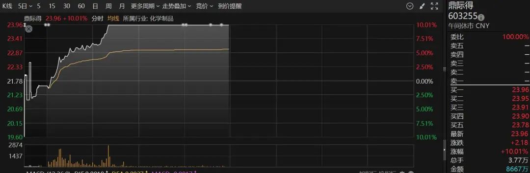 光伏产业早间也集体走强,POE胶膜方向领涨,板块指数盘中一度放量直线拉升涨近3%。鼎际得、沈阳化工均快速涨停,风光股份、鹿山新材等涨幅居前。