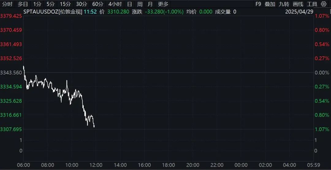 国际金价突然跳水跌逾1%,一度失守3310美元/盎司。