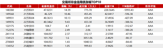交易所债券市场收盘。据Choice 数据统计显示,今日交易所市场非金信用债涨幅排行前五的分别是:23万科01、21万科06、22万科04、22万科06、12中交03。具体如下: