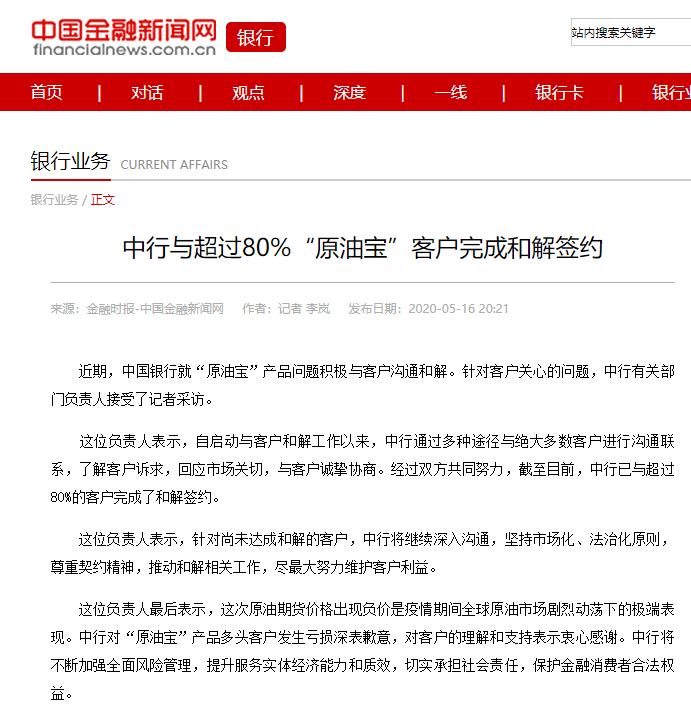 中行原油宝事件获突破!与超八成客户完成和解