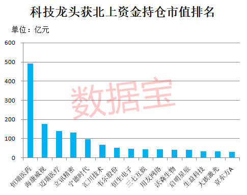 同样是A股重要投资力量的北上资金,也早已将目光聚焦科技龙头公司。数据显示,截至目前,北上资金合计持有“科技龙头50强”公司市值1994亿元。4家公司获北上资金持仓市值在百亿元以上,分别是恒瑞医药、海康威视、迈瑞医疗、立讯精密,其中恒瑞医药获北上资金持仓市值491亿元高居榜首。