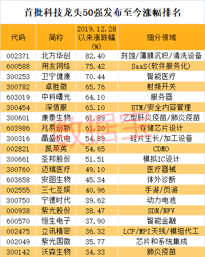 不论是新基建还是新经济,毫无疑问,科技企业在其中占据了重要地位,各细分领域的科技龙头公司对行业的引领作用也不可小觑。早在去年12月份,数据宝就首次发布“科技龙头50强”名单,详情请看:《A股科技龙头50强出炉!拿下A股6%市值,机构重仓持有2000亿,三年飞出3只十倍股》。如今近半年时间过去,第一批“科技龙头50强”名单发布后股价表现可圈可点,迄今平均涨幅为25.57%,跑赢同期沪指30个百分点。