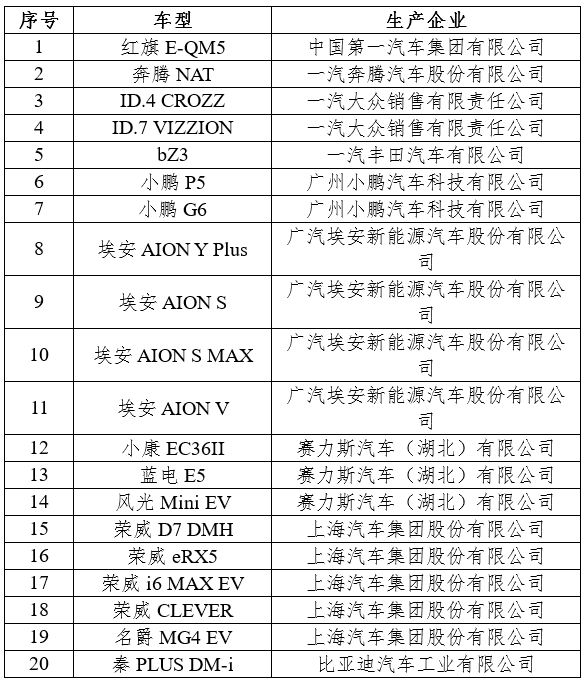 2024年新能源汽车下乡车型目录