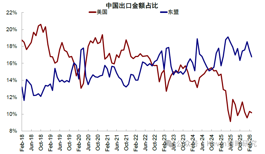 图表:东南亚是近两年中国出口主要目的地