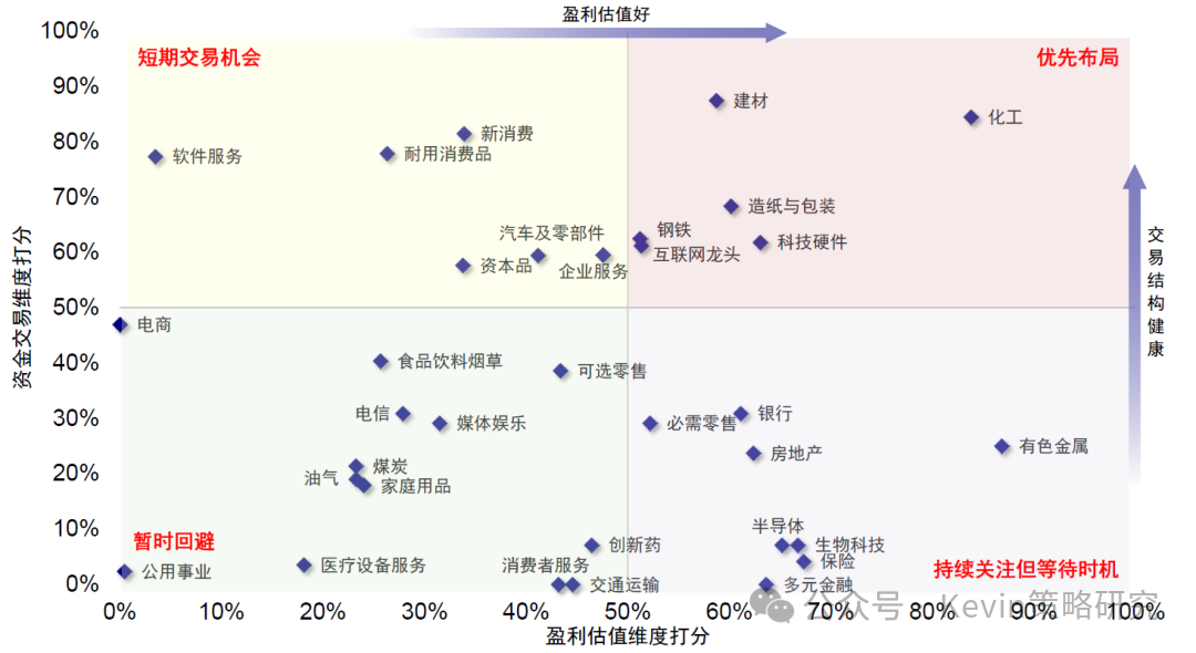图表:创新药、有色等左侧布局,煤炭、储能持有但加仓性价比较低