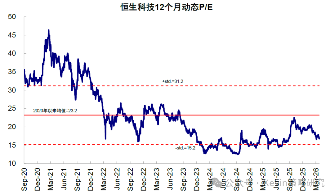 图表:恒科动态P/E达均值以下1倍标准差