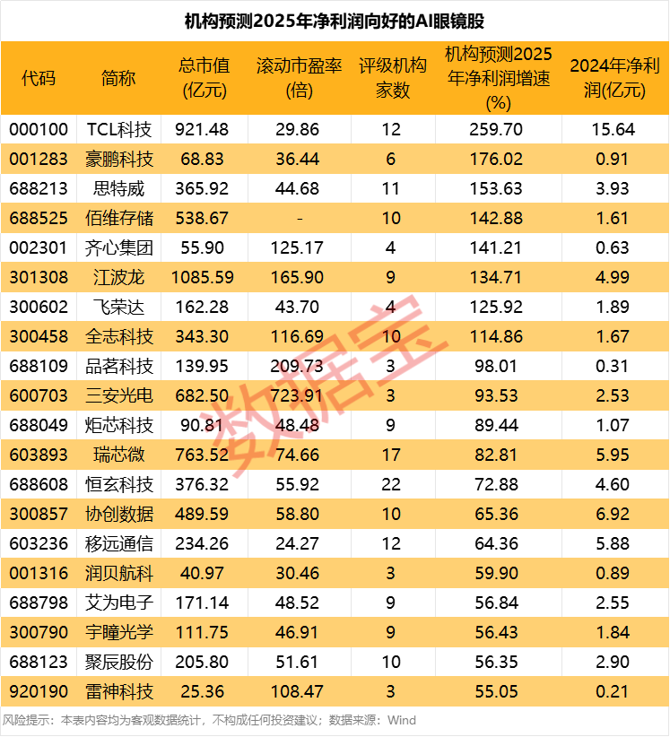 根据3家及以上机构一致预测,在去年同期盈利基础上,TCL科技、豪鹏科技、思特威2025全年净利润增速居前,依次为259.7%、176.02%、153.63%;佰维存储、齐心集团、江波龙、飞荣达、全志科技全年净利润均有望实现翻倍。