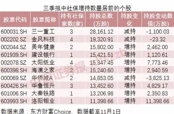 社保基金被认为是广义的“国家队”,持股动向也备受关注。
