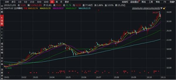 靠着苹果核心供应商概念走红的立讯精密今年以来涨势喜人,三季度公司股价涨幅高达40%,股价较年内最低点已大涨200%。