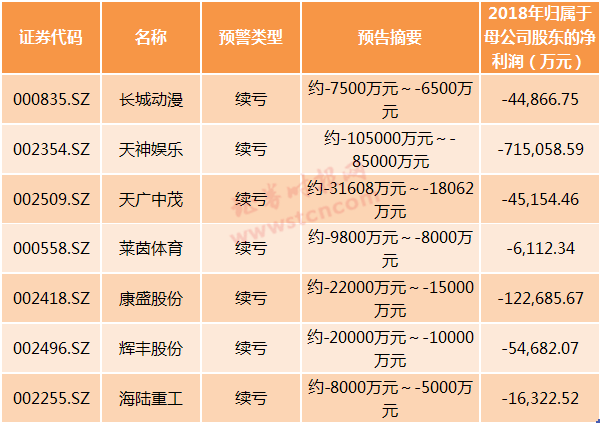 3、结合去年业绩来看,7家去年亏损的公司预计今年净利润变动上限为负值,这意味着这些公司有较大概率实施被退市风险警示,即被戴帽。