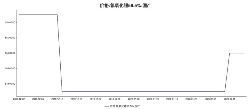 电池级氢氧化锂在2月14日的报价为5.5万元/吨,其在2月11日结束了长达近2个月的横盘行情,出现了上涨信号,涨幅为500元/吨。