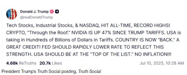 特朗普在其Truth Social社交媒体平台发表的乐观言论,也为周四的市场情绪添柴加火。