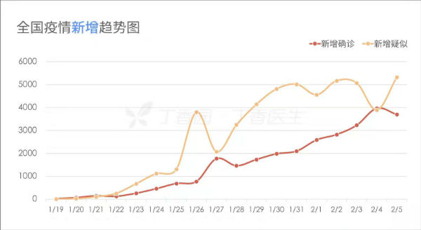 据国家卫健委官网,2月5日0~24时,31个省(自治区、直辖市)和新疆生产建设兵团报告新增确诊病例3694例,新增治愈出院病例261例,当日解除医学观察的密切接触者21365人。