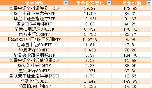 节后开市以来,截至2月5日,ETF类型股票型基金总份额增加74.5亿份;国泰中证全指证券公司ETF、华宝中证科技龙头ETF、华宝中证全指证券ETF、国泰CES半导体ETF、华泰柏瑞沪深300ETF、南方中证500ETF、招商MSCI中国A股国际通ETF份额增长居前,规模增加均超过5亿份。资金对券商和科技龙头偏好明显。