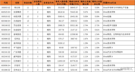 按增持股份占流通股比例来看,增持股数占流通股比例最高的前三名为欧比特(300053)、长园集团(600525)以及长航凤凰(000520),增持股份数占流通股比例分别为6.11%、5.07%以及5%;增持金额分别为3.86亿元、7.04亿元以及1.64亿元。