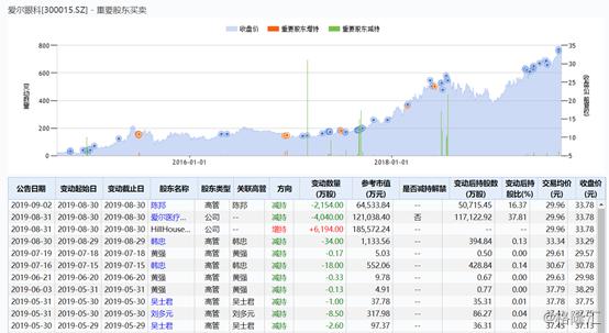 被增持金额第二大的爱尔眼科,不过值得注意的是,随着爱尔眼科股价的持续走高,公司的股东出现分歧的现象,显示,今年5月以来,公司高管发生多起减持现象,而HillHouse,Temasek FullertonAlphaPte.Ltd却增持了公司的股份,可见目前对于爱尔眼科的估值,目前市场上对其估值分歧较大。
