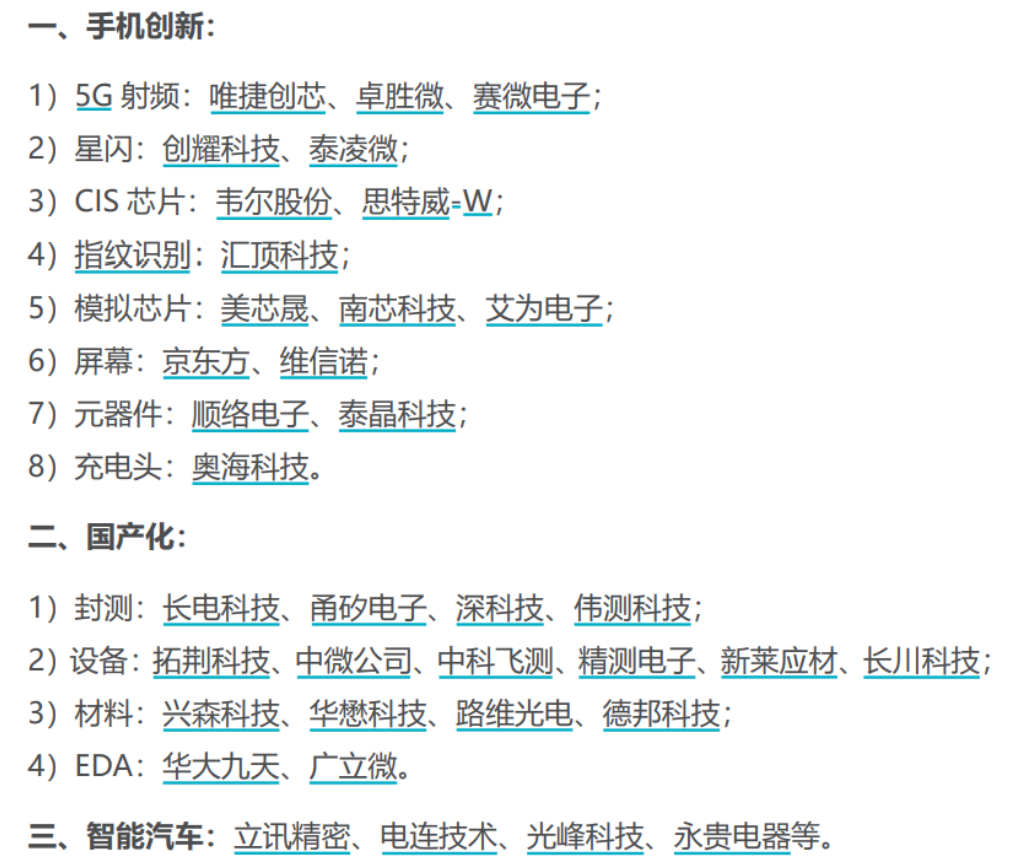 3)芯片国产化率提升,据TechInsights拆机报告指出,Mate60Pro采用国芯片,此外其中Wifi蓝牙模块、充电IC、显示IC、电源管理IC均为海思自研或国产供应商;