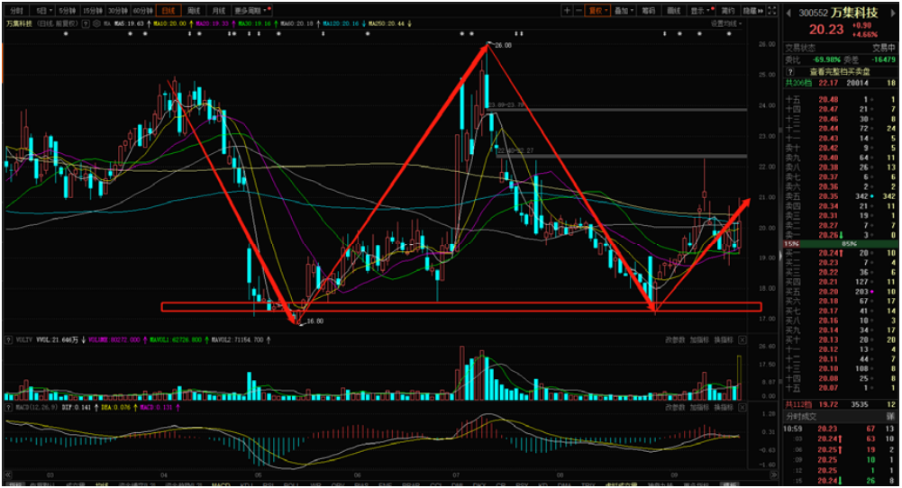5、技术面上,K线形成双底反转,MACD红柱逐步扩大!