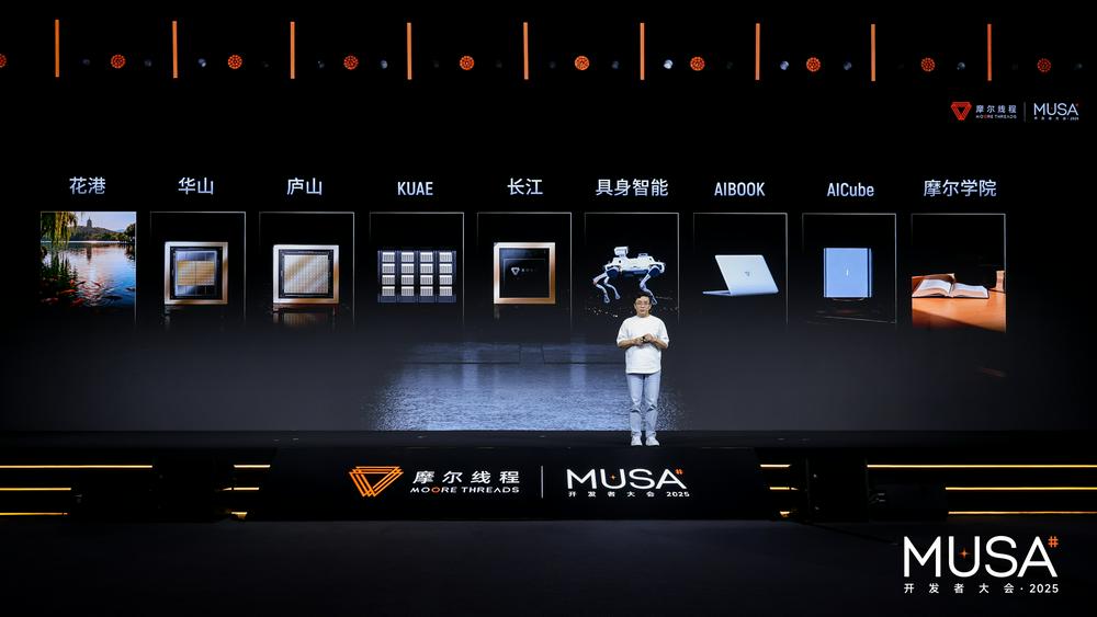 在今日举行的首届MUSA开发者大会上,摩尔线程发布新一代全功能GPU架构“花港”,以及基于“花港”架构的AI训推一体芯片“华山”和专攻高性能图形渲染的芯片“庐山”。