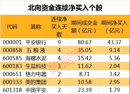中国平安等7股获北向资金连续净买入