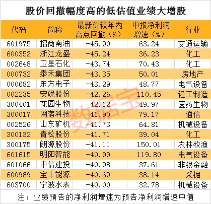 15只低估值高增长股遭大幅回调