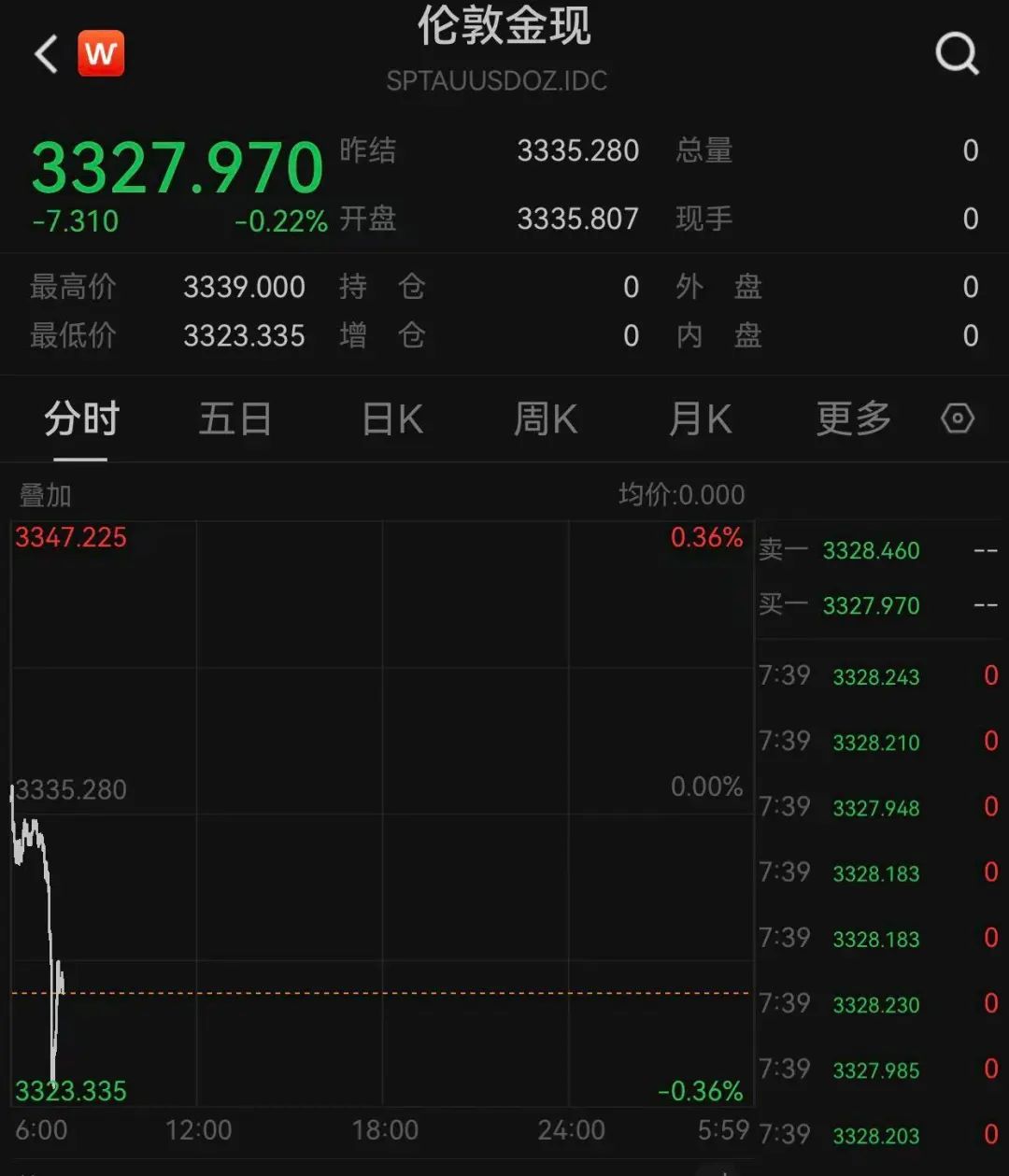 来看美国总统特朗普与普京会晤后各方最新情况。市场方面,率先开盘的现货黄金高开后走低,目前回落至3330美元下方,俄乌冲突的缓和与否成为金价走势的关键因素之一。