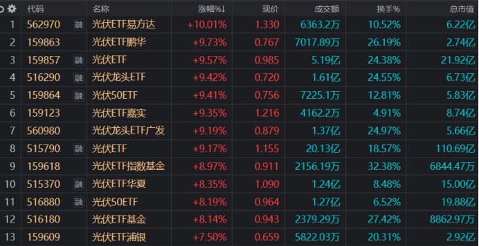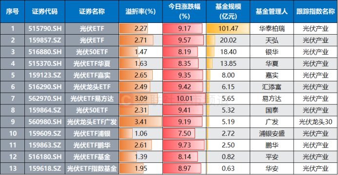 集体溢价大涨!光伏ETF成“香饽饽” 热门溢价品种梳理 这些方向也高热