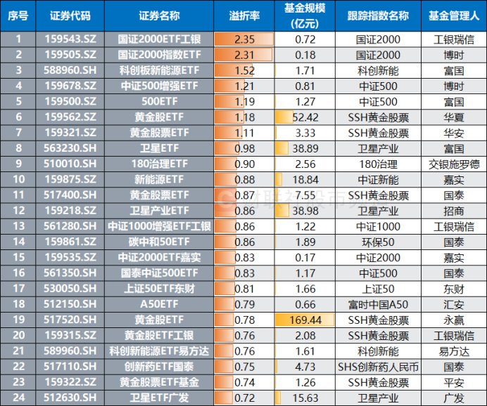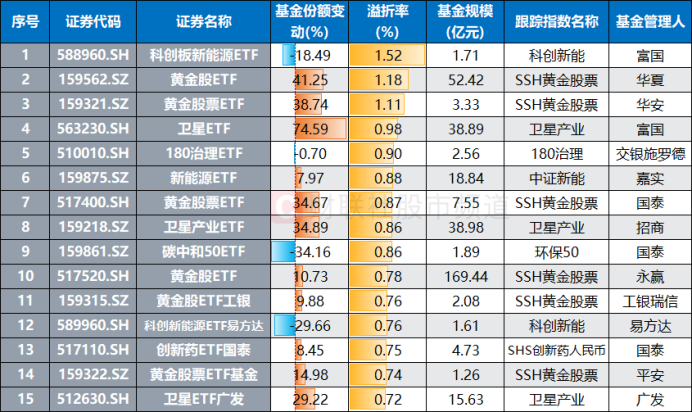 高溢价股票ETF盘点,卫星、黄金方向成关键