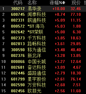 从盘面上看,易华录收盘涨停,闻泰科技涨超8%,皖通科技等涨超5%,千方科技、新北洋、中国长城等纷纷拉升。
