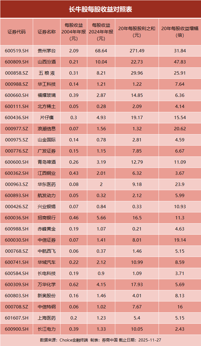 华域汽车过去20年每股收益则增长了8.59倍。该公司2004年的每股收益为0.22元,2024年每股收益为2.12元,其间,公司派发股息10.99元/股。