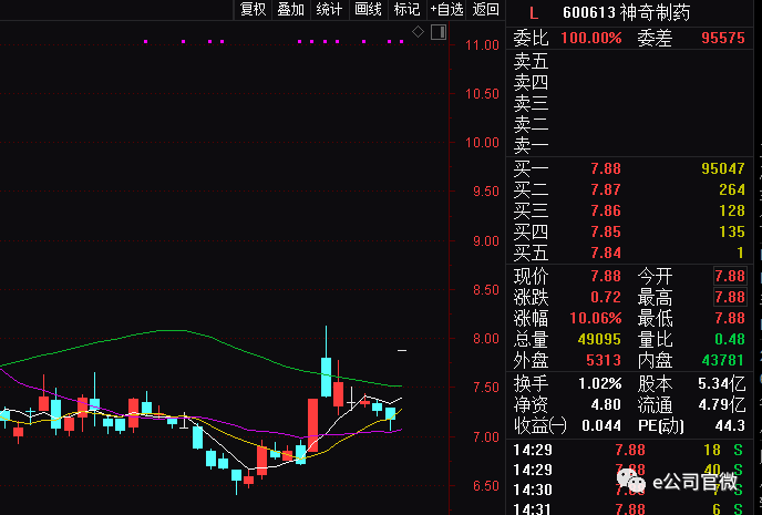 今日,神奇制药开盘一字涨停,带动医药及医疗板块整体走强,尔康制药、同和药业、泰格医药、乐心医疗等6股涨停,爱朋医疗、珍宝岛、普洛药业等涨幅居前。