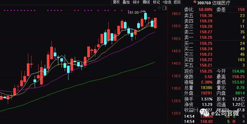 值得注意的是,迈瑞医疗总市值今日超过温氏股份,成为创业板第一大市值公司。迈瑞医疗自去年10月上市以来,一直稳步上扬,今日上涨2.3%,收盘报158.25元,总市值达1924亿元。温氏股份股价则连续6个交易日下跌,截至今日收盘,总市值下滑到1903亿元。