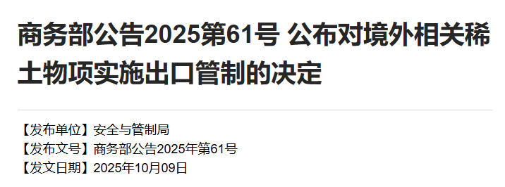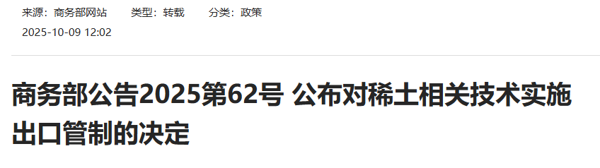 第61号、62号公告则是商务部发布的对境外相关稀土物项实施出口管制以及对稀土相关技术实施出口管制。