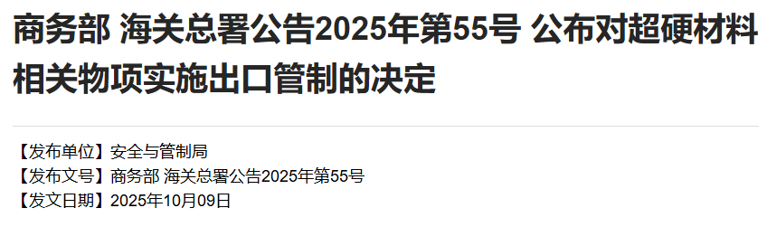 两部门发布重磅公告 涉及超硬材料、稀土、锂电池等出口管制